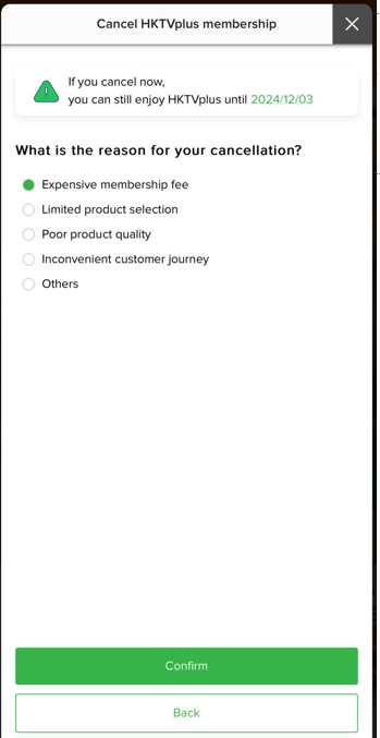 Once the HKTVplus membership plan is automatically renewed, it cannot be cancelled or refunded midway.